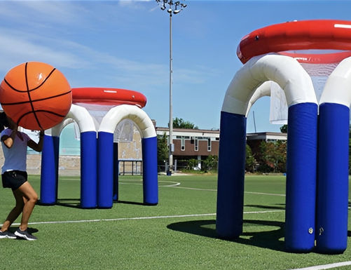 A résztvevők egy óriás kosárlabdával céloznak a felfújható kosárgyűrűbe – egyszerűnek hangzik, de garantált a “még egy dobást!” érzés. Versenyezhettek csapatban, időre, vagy jöhet a klasszikus “ki dob többet” kihívás.